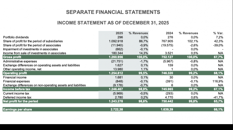 The consolidated and separate financial statements, the statement of financial position as of December 31, 2025, and related financial indicators form an integral part of this press release.