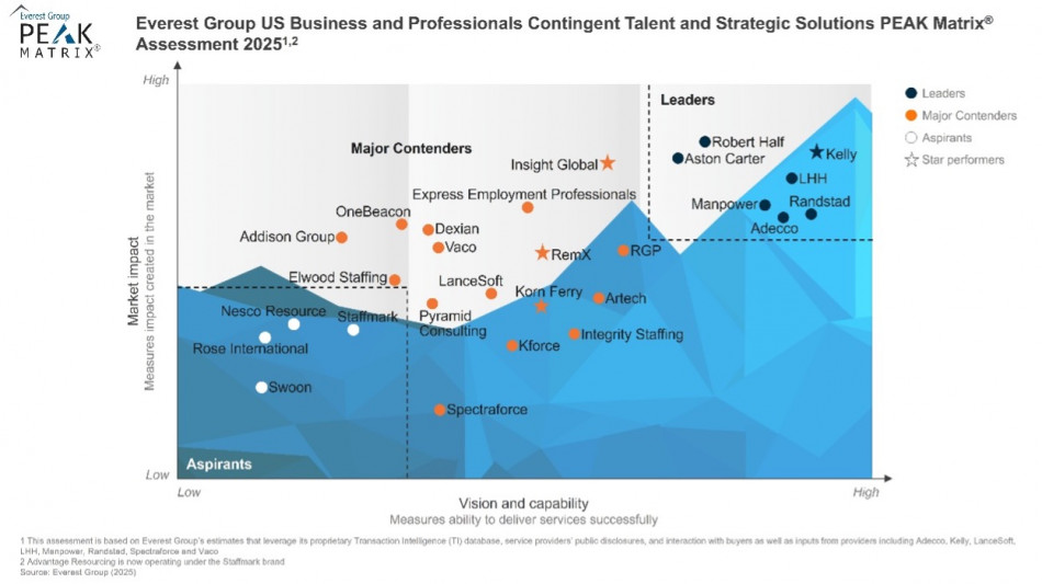 The report explores the contingent staffing provider landscape in the United States and its market impact in 2025 for white-collar workers across IT, Engineering, as well as Business & Professionals industries. Providing the market's overview and analysis on different contingent talent and strategic solutions providers, LHH Recruitment Solutions is noted as a differentiator based on the Everest Group's PEAK Matrix evaluation. This marks LHH's third back-to-back leadership honor in the Everest PEAK Matrix Contingent Talent & Strategic Solutions assessment, as LHH previously ranked a Leader and Star Performer in 2024, and a Leader in 2023.
