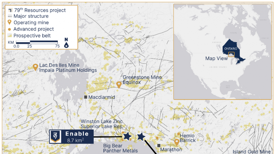 Natalie Bellis, CEO of Seventy Ninth Resources said, "We are excited by our initial visit to Enable and McKellar projects and we look forward to receiving the assay results shortly. The visit to the area also gave us the opportunity to introduce the Company to members of the First Nation communities who are key stakeholders on these projects. We look forward to developing these relationships into strong long-term partnerships as the projects become more advanced."