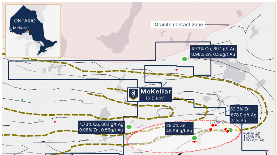 Historical grades from McKellar show up to 4.73% copper, 32.3% zinc and 678 g/t silver.