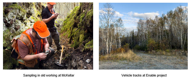 Successful reconnaissance and initial sampling program completed at McKellar and Enable projects.