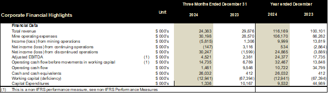 Mark Brennan, CEO and Chairman commented, "The results from this quarter demonstrate our continued ability to maintain production while paying down debt through increased cashflows. This process has continued through the first quarter of 2025. We are well positioned to deploy capital in a strategic and fiscally prudent manner to ramp up exploration efforts at MDN, initiate our underground production at Paloma, complete a bankable feasibility study at our high grade/ purity Mont Sorcier DRI iron project, and fund the development of the Lagoa Salgada Project, assuming closing of the proposed acquisition of Ascendant Resources Inc.), while continuing to increase Cerrado's financial strength., We anticipate 2025 will be a transformative year for Cerrado."