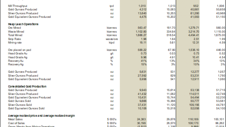 Annual production of 54,494 Gold Equivalent Ounces ("GEO"); in-line with guidance