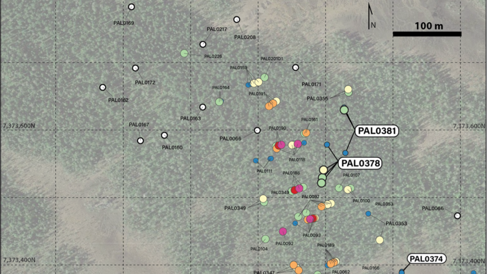 PAL0390 | 3408086.94 | 7373644.48 | 172.81 | 45.0 | -79.5 | 230.5 | Hole Abandoned |