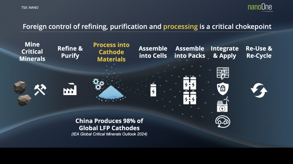 To capitalize on this momentum, Nano One began trading on the U.S. OTCQB under the ticker NNOMF on July 14, enhancing visibility and accessibility to U.S. investors as it expands commercial efforts and builds partnerships across North America. Momentum is further supported by policy shifts like the One Big Beautiful Bill (OBBB), which proposes tighter domestic content requirements and phases out incentives tied to foreign inputs. With CAM representing the highest cost component in a cell, Nano One's One-Pot™ process provides a path to resilient, cost competitive, and fully domestic manufacturing.