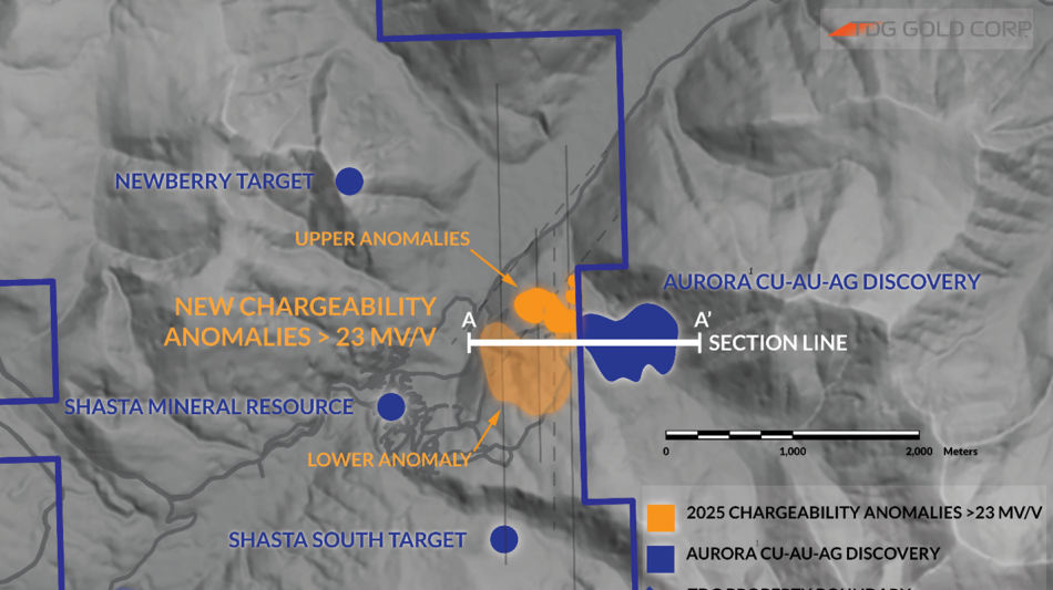 WHITE ROCK, BC / ACCESS Newswire / July 16, 2025 / TDG Gold Corp. (TSXV:TDG)(OTCQX:TDGGF) (the "Company" or "TDG") is pleased to provide an update on the recently initiated reconnaissance and characterization Induced Polarization ("IP") geophysical survey to the west of Freeport McMoran-Amarc Resources' ("Freeport-Amarc") AuRORA1 gold-rich copper porphyry discovery. AuRORA1 lies immediately adjacent to the Company's 100% owned Greater Shasta-Newberry ("GSN") project in the evolving Toodoggone District of northern British Columbia.