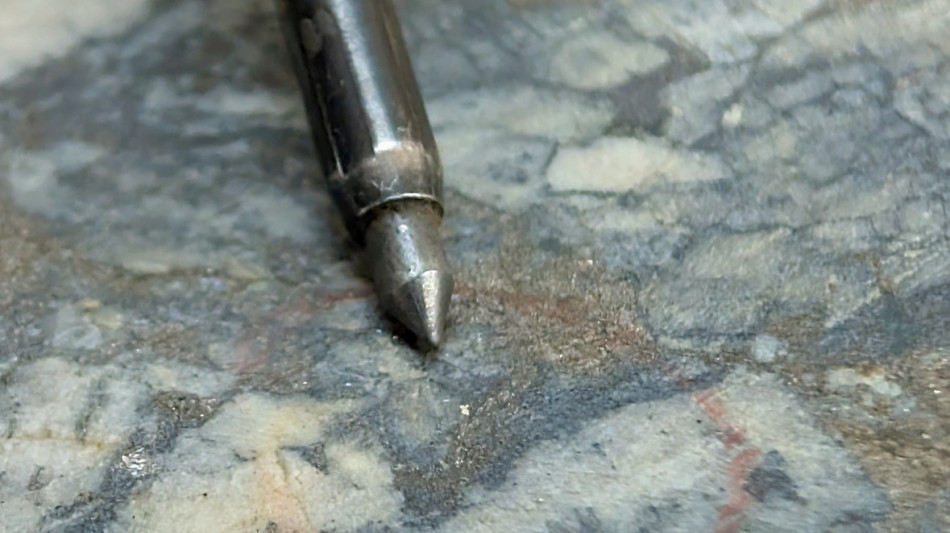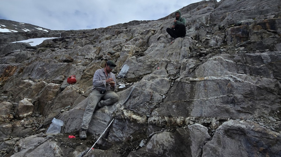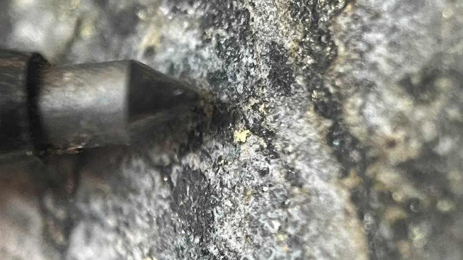 Continued prospecting and mapping in the Vermillion Zone has led to the discovery of in situ visible gold and electrum mineralization in samples A0514497 (Figure 2) and A0514398 (Figure 3), hosted in planar quartz manganese-carbonate veins with accessory pyrrhotite, chalcopyrite, bismuthanite, and wolframite. Sample A0514497 with visible gold mineralization was collected 5 metres northeast and on trend of 2024 sample C970477 which returned assay values of 205 g/t gold and 118 g/t silver (see News Release dated October 8, 2024). The second visible gold sample A0514398 was discovered approximately 220 metres south-southwest of sample A0514497 in a newly discovered sub-parallel vein zone. Assays for these samples are pending.