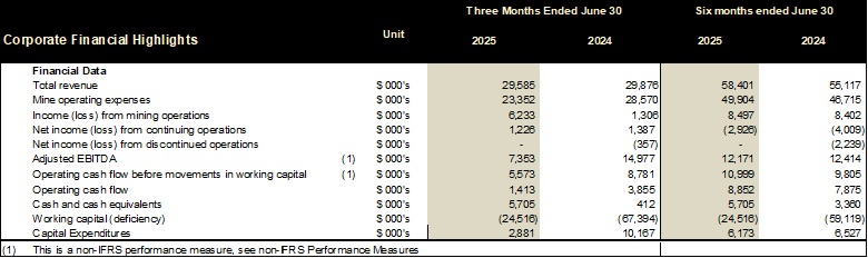 Net income from continued and discontinued operations for the three months ended June 30, 2025, was $1.2 million as compared to a net income of $1.0 million for the three months ended June 30, 2024. The increase in net income is primarily a result of decrease in foreign exchange loss of $5.9 million and lower depreciation expense of $1.0 million offset by $5.2 million decrease in metal sales, an increase in loss on remeasurement of MDN stream obligation of $0.8 million and an increase in loss on remeasurement of Ascendant secured note and stream obligation of $1.1 million.
