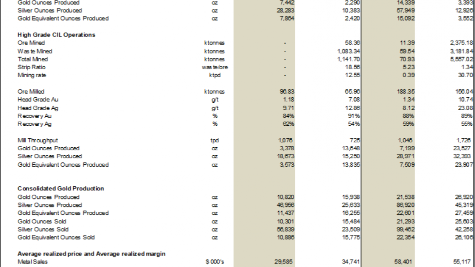 The Company produced 11,437 gold equivalent ounces ("GEO") during the three months ended June 30, 2025, as compared to 16,255 GEO for the three months ended June 30, 2024. In the period ended June 30, 2025, heap leach production was significantly higher compared to the prior year due to 27% higher recoveries and 438,530 additional tonnes placed on the pad. This was offset by a 10,262 ounce decrease in production from the CIL operation as the Company's focus moved towards heap leach operations in 2025 and only processed low grade ore in Q2 2025.