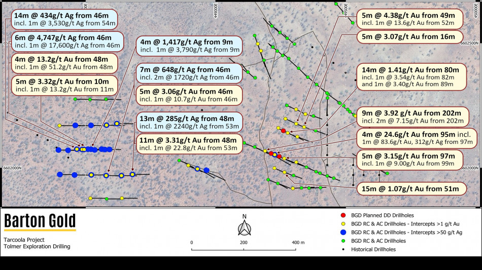 ADELAIDE, AUSTRALIA / ACCESS Newswire / August 24, 2025 / Barton Gold Holdings Limited (ASX:BGD)(FRA:BGD3)(OTCQB:BGDFF) (Barton or Company) is pleased to confirm the completion of diamond drilling (DD) at the high-grade Tolmer gold and silver prospect, located at the Company's South Australian Tarcoola Gold Project (Tarcoola). Three holes totalling 595.3 metres drilling were completed in the 'eastern gold zone' to identify structural controls and guide future targeting.