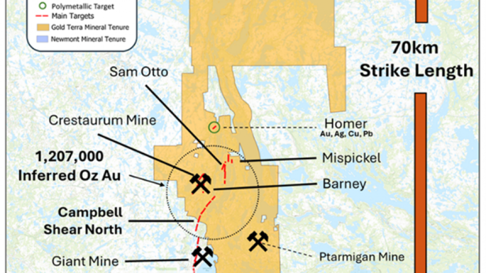 Gold Terra's strategic land holdings covering an extensive mineralized system in the Yellowknife Gold Belt are shown in the figure below: