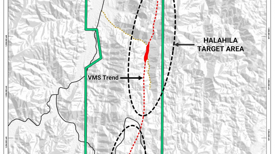 Ongoing fieldwork at Halahila includes: detailed geological mapping and systematic rock-chip and channel sampling of the VMS gossans and associated alteration zones along a greater than 10 kilometer north-south trend. Results indicate extensive VMS-style mineralization and alteration, defining a continuous gold-enriched corridor over approximately 650 meters of strike length and widths up to 30 meters (Figures 1 and 2).